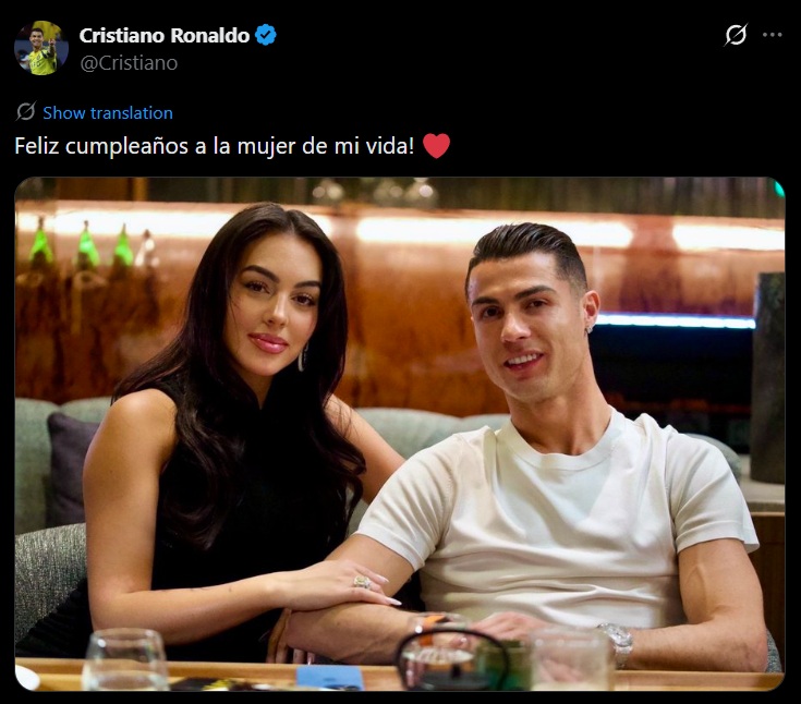 The Saudi-based forward took a brief pause from his competitive schedule to share a photo of the couple accompanied by the affectionate note, prompting a wave of fan reactions and media pickup around the world.