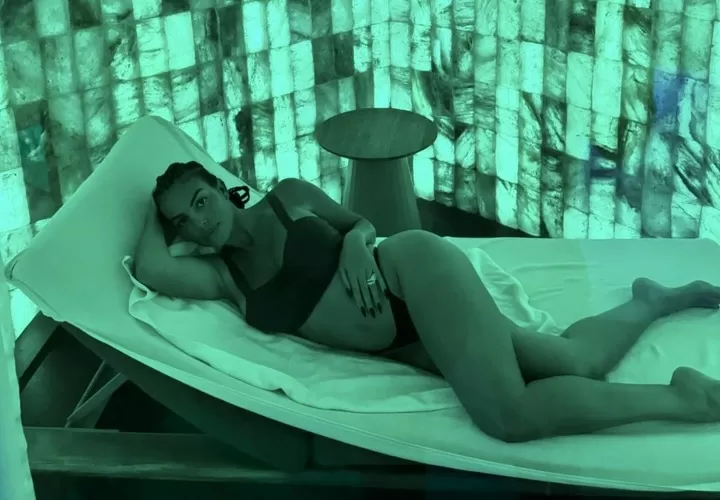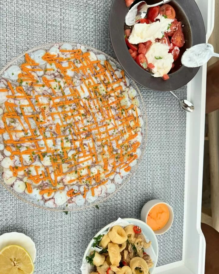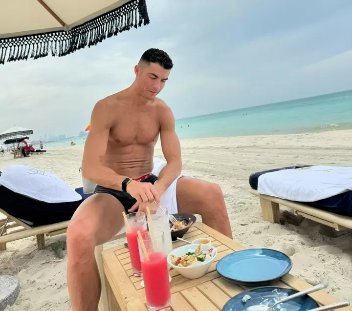 The gallery also included snapshots of her airport ensemble and relaxed sun-lounger looks, giving fans a closer look at her effortless holiday style. Adding a playful touch to the post, Georgina shared a candid topless photo of Ronaldo enjoying food on the beach, alongside images of their meals, coffee moments, and a promotional display featuring one of her professional photoshoots.